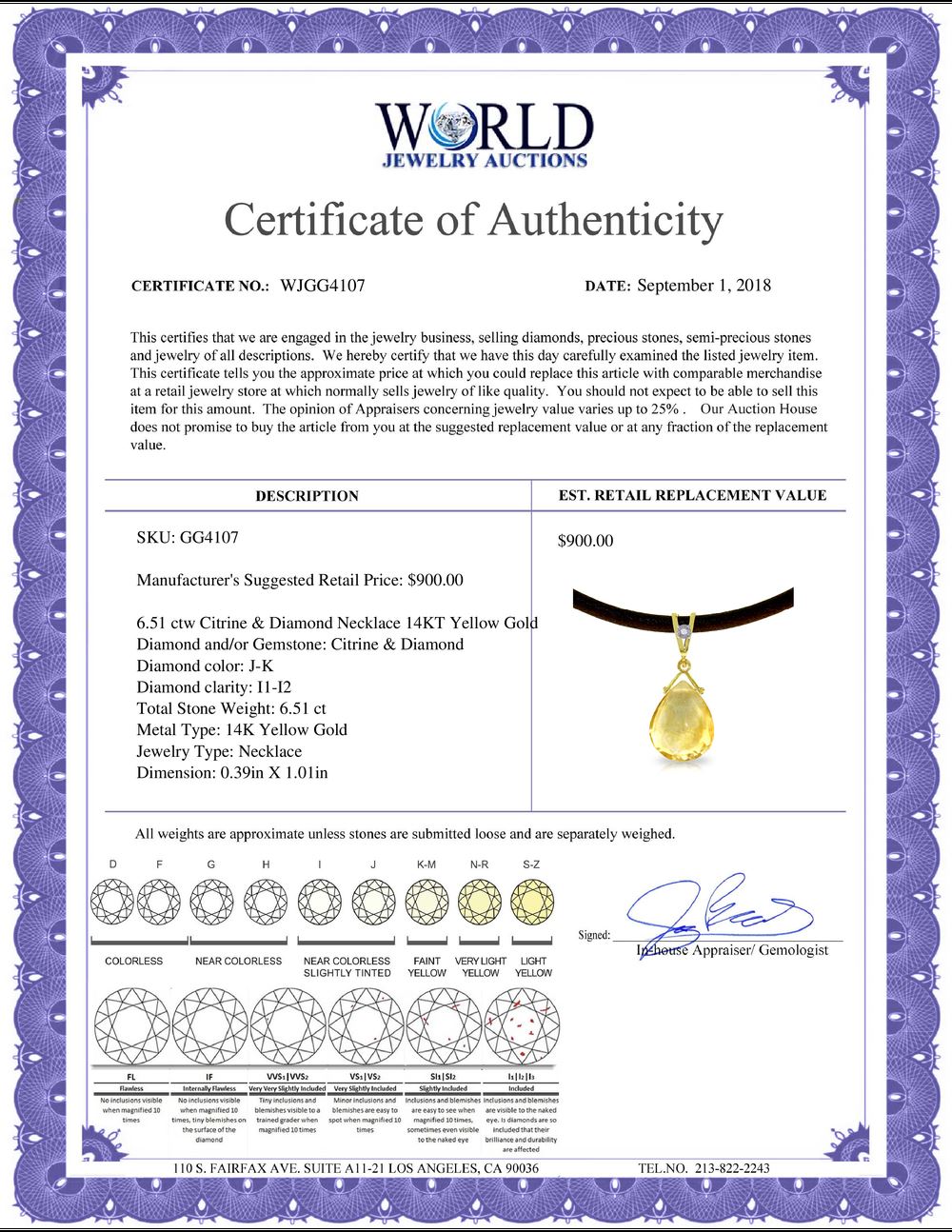 REF-26P9H - SKU: GG4107 ---- Genuine 6.51 ctw Citrine & Diamond Necklace 14KT Yellow Gold