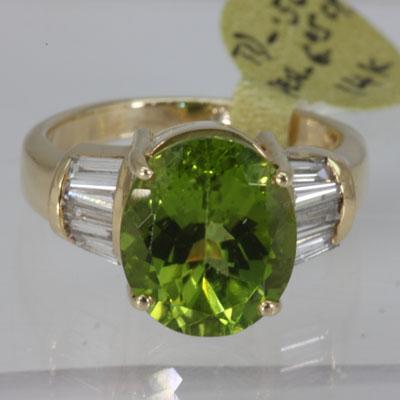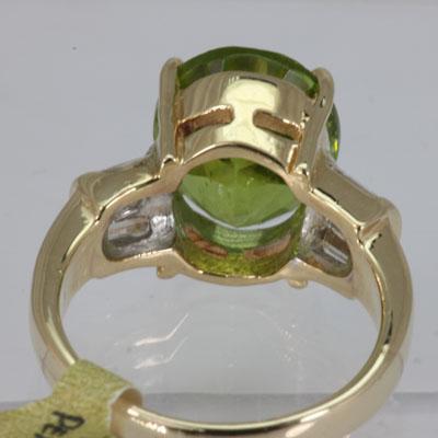 Main Stone: Peridot ; Carat Weight: 6.56ctw ; Gold Carat:14KT; Metal: Yellow Gold ; Ring Size: 6 ; Diamond Count: TD.51 ; Diamond Weight: 0.51 ; Gemstone Carat Weight: 6.05; Cut: OVAL