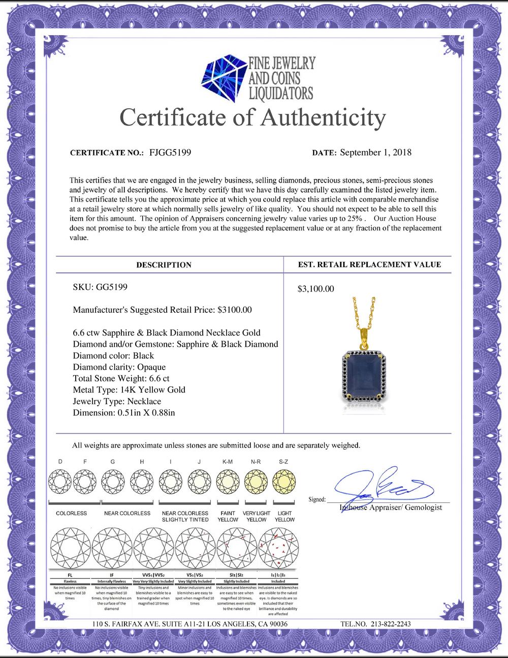 REF-100N6R - SKU: GG5199 ---- Genuine 6.6 ctw Sapphire & Black Diamond Necklace 14KT Yellow Gold