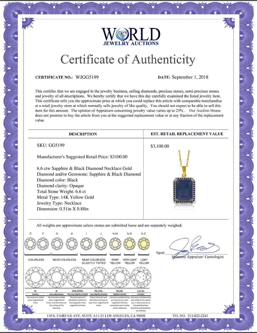 REF-100N6R - SKU: GG5199 ---- Genuine 6.6 ctw Sapphire & Black Diamond Necklace 14KT Yellow Gold