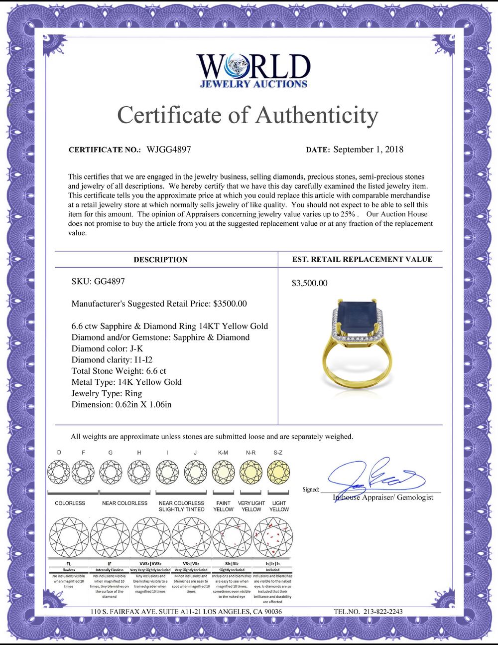 REF-114X8M - SKU: GG4897 ---- Genuine 6.6 ctw Sapphire & Diamond Ring 14KT Yellow Gold