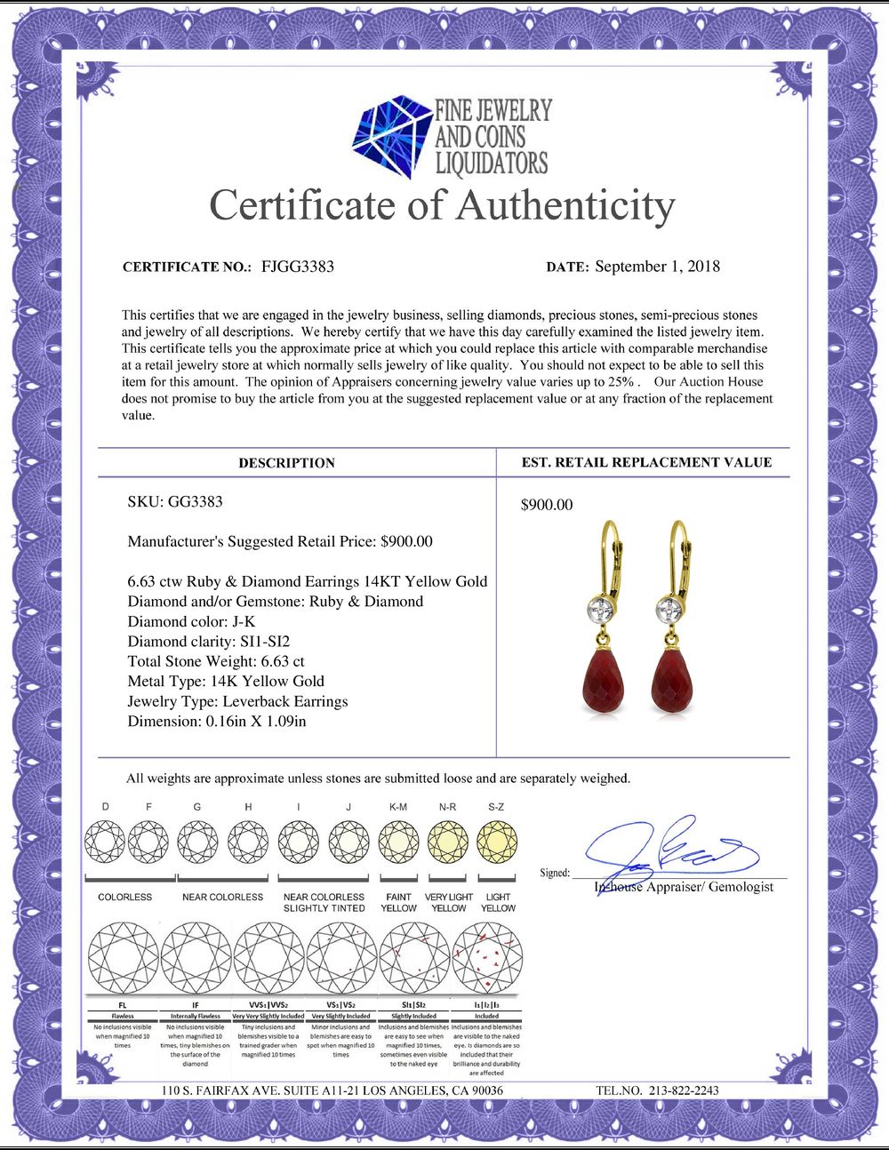 REF-29T7A - SKU: GG3383 ---- Genuine 6.63 ctw Ruby & Diamond Earrings 14KT Yellow Gold
