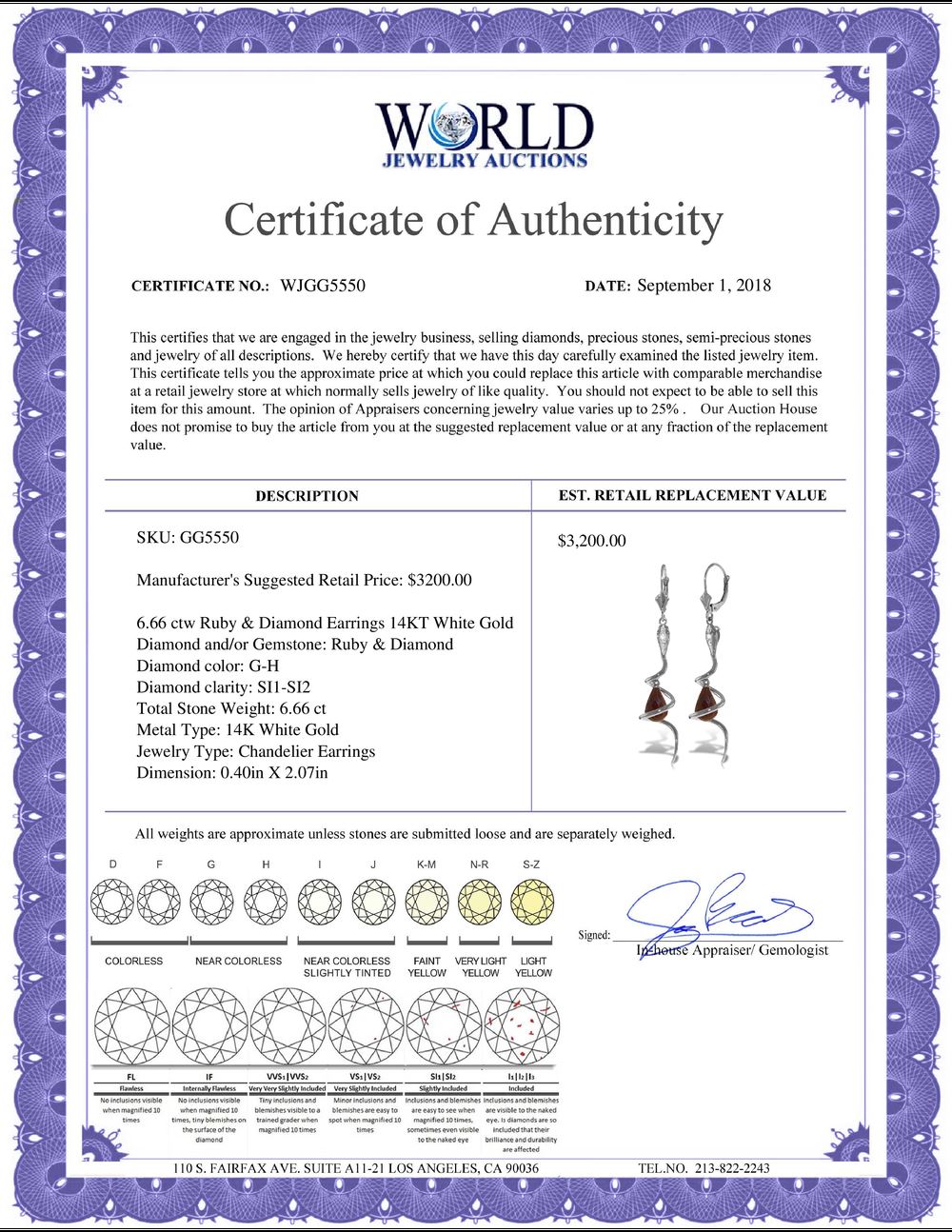Genuine 14K Rose Gold 6.66 ctw Ruby & Diamond Earrings