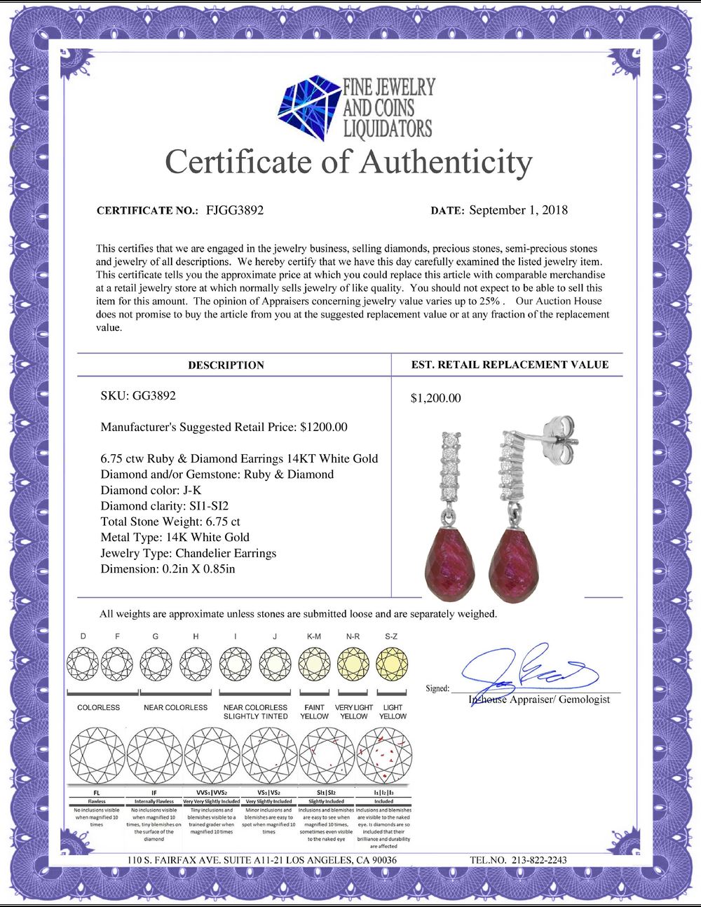 REF-39W4Y - SKU: GG3892 ---- Genuine 6.75 ctw Ruby & Diamond Earrings 14KT White Gold