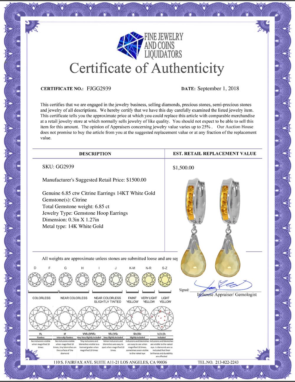 REF-49Z6N - SKU: GG2939 ---- Genuine 6.85 ctw Citrine Earrings 14KT Rose Gold