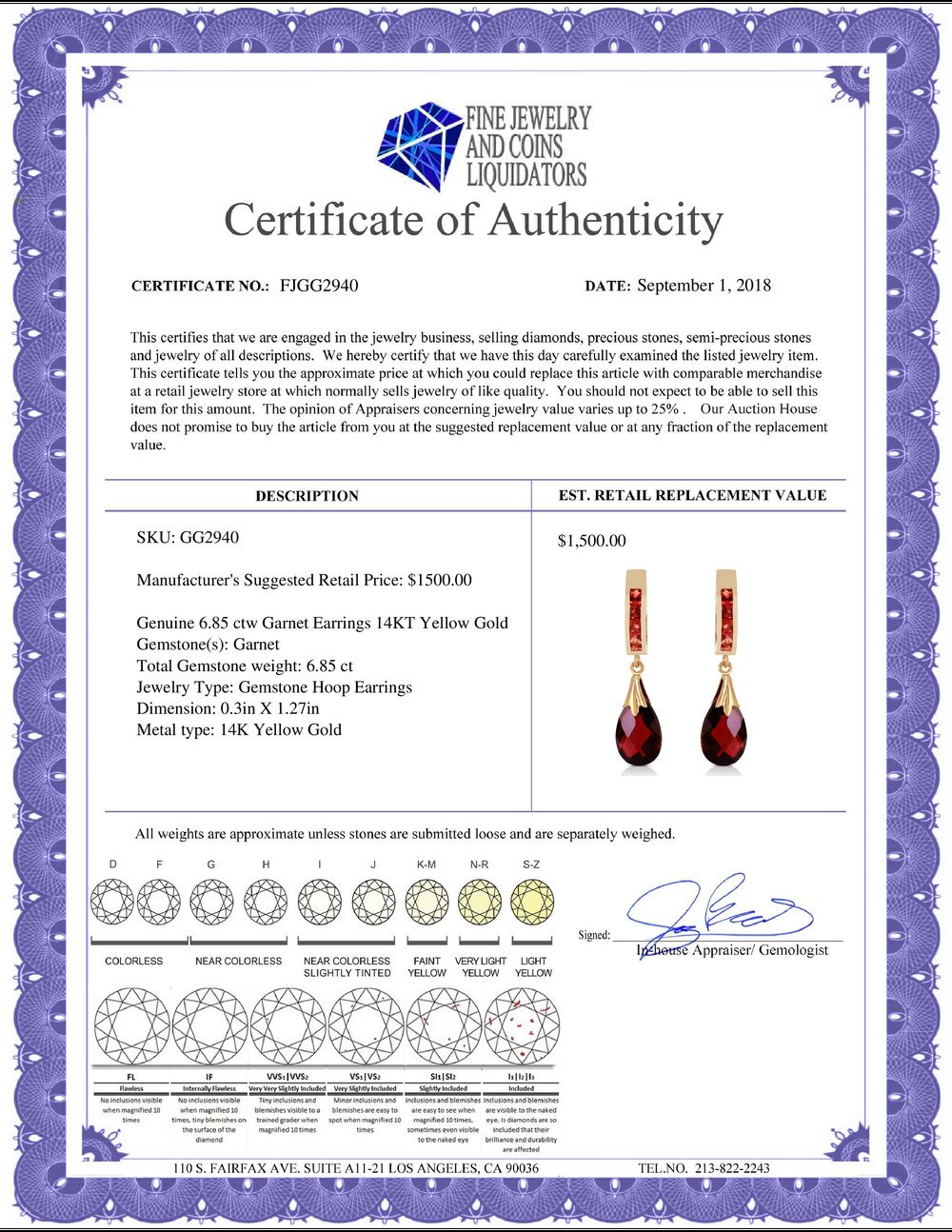 REF-49T6A - SKU: GG2940 ---- Genuine 6.85 ctw Garnet Earrings 14KT Yellow Gold