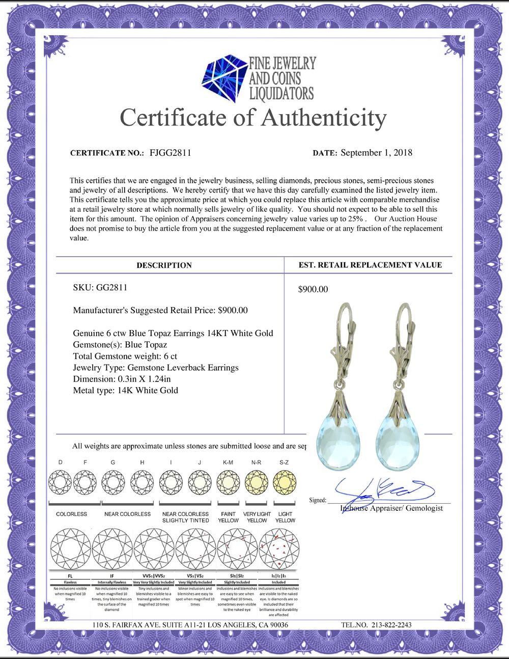 REF-27P8H - SKU: GG2811 ---- Genuine 6 ctw Blue Topaz Earrings 14KT Rose Gold