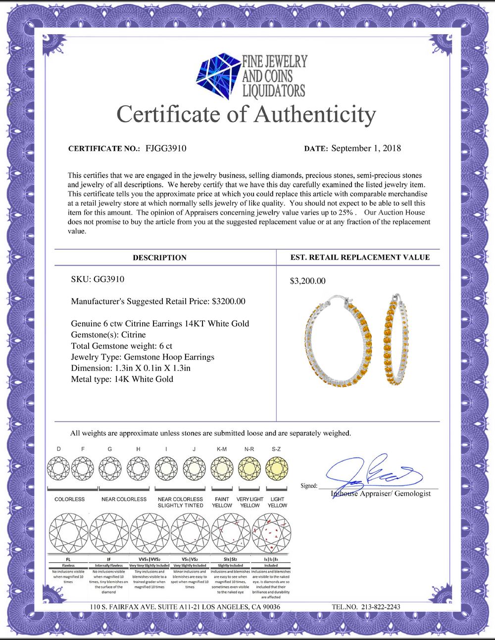 All Gia and EGL Diamonds are subject to availability due to consignors’ terms with us.