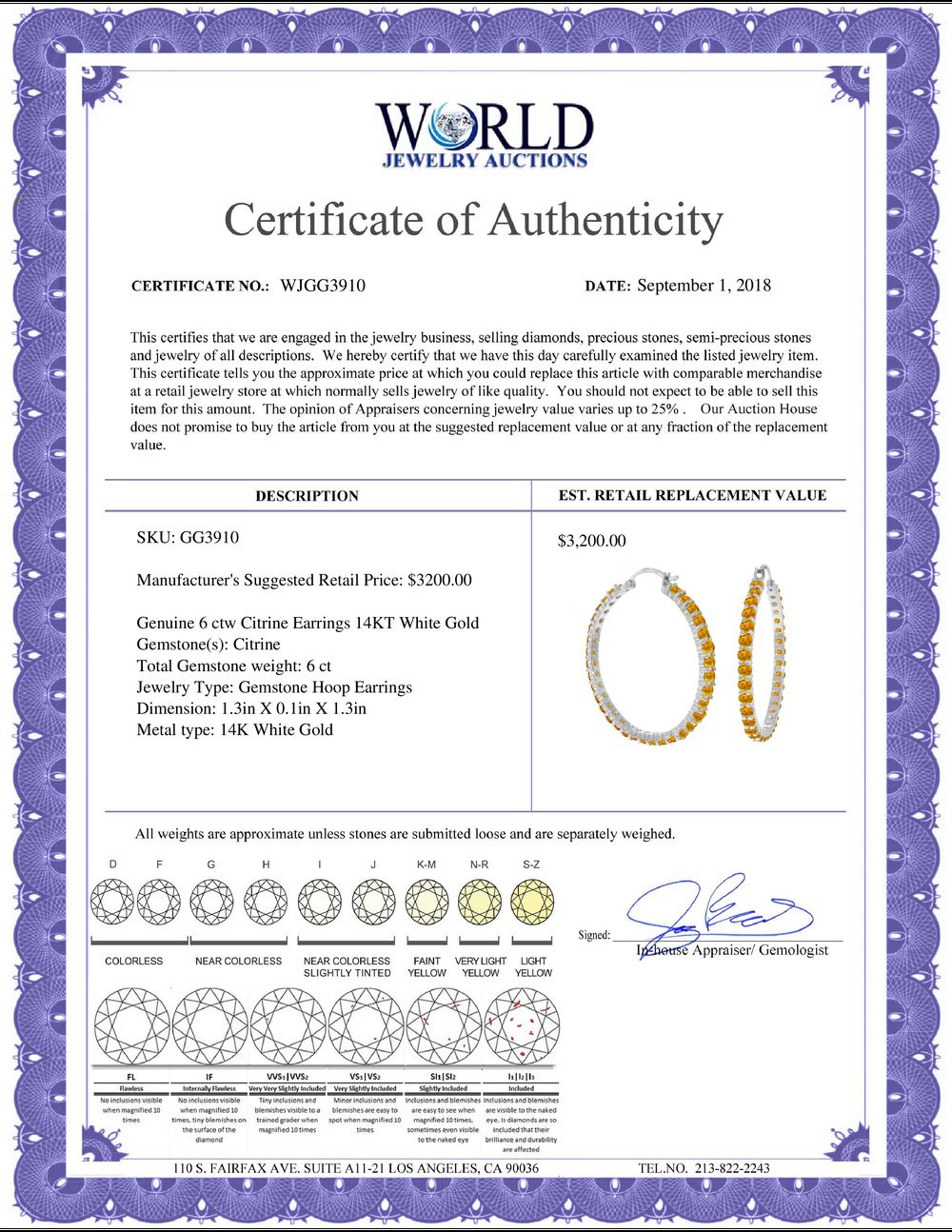 WORLD JEWELRY AUCTION believes to the best of its knowledge that the information presented in any listing has come from reliable sources. Such information is presented solely for the convenience of the Purchaser. WJA makes no warranties of any kind related to the information presented in any listing. WJA further makes no warranties, either express or implied, relating to the value, marketability or condition of the lot described in any listing. Prospective bidders should investigate a lot thoroughly before bidding. By bidding the Bidder acknowledges that Bidder has investigated the lot to his or her satisfaction, or, that Bidder has chosen not to do so, and agrees to accept the lot being bid on with no objections after the sale closes. If you are uncertain please contact us with your questions prior to bidding. If you are still uncertain after we reply, please refrain from bidding. Photos other graphic material contained in any listing of generic or duplicate lots may be stock presentations and not necessarily of the specific lot.
