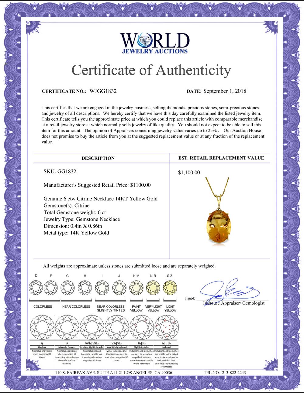 REF-34P3H - SKU: GG1832 ---- Genuine 6 ctw Citrine Necklace 14KT Yellow Gold
