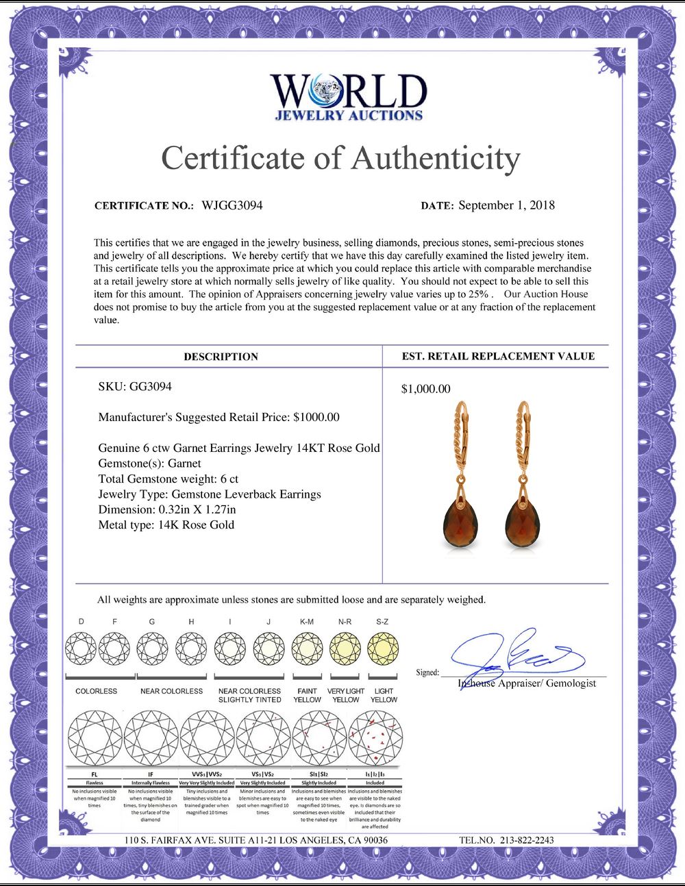 REF-30F6Z - SKU: GG3094 ---- Genuine 6 ctw Garnet Earrings 14KT Rose Gold