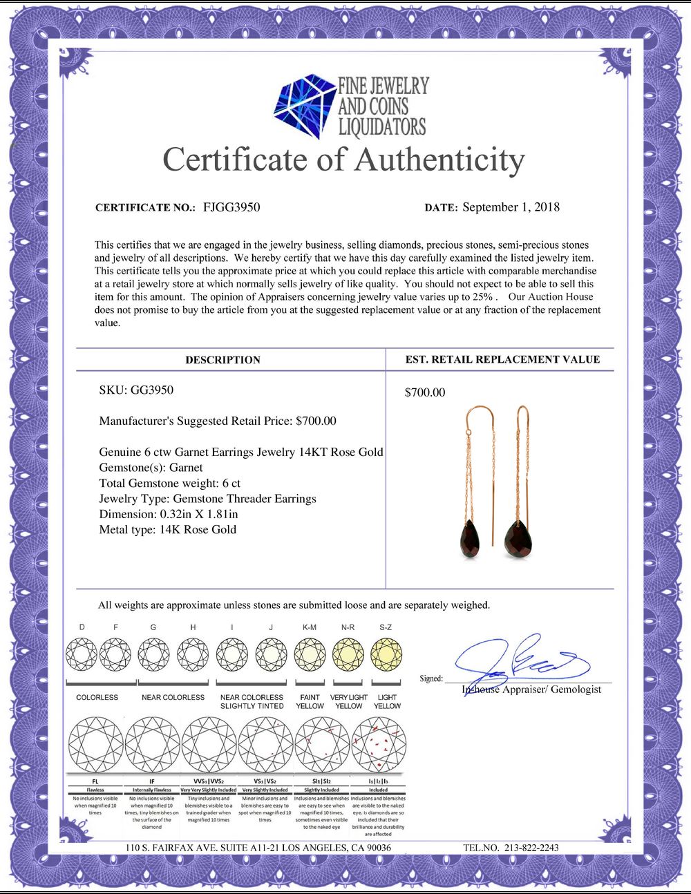 REF-21M9T - SKU: GG3950 ---- Genuine 6 ctw Garnet Earrings 14KT White Gold