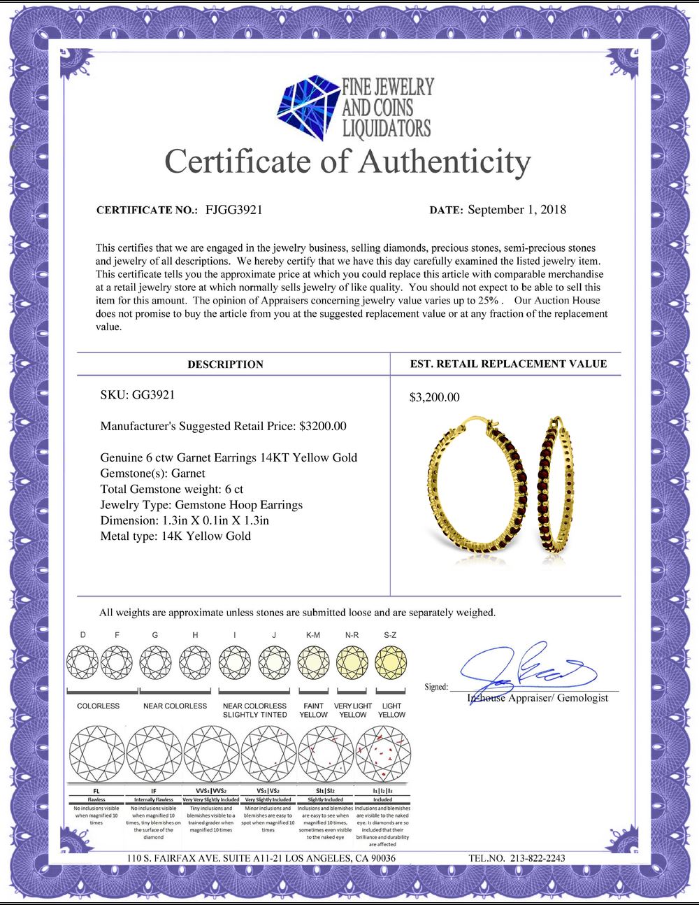 REF-104N8R - SKU: GG3921 ---- Genuine 6 ctw Garnet Earrings 14KT Yellow Gold
