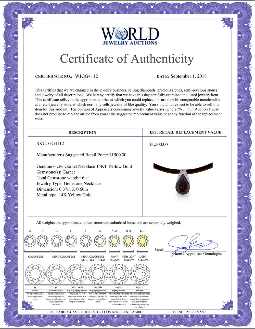 REF-49V6W - SKU: GG4112 ---- Genuine 6 ctw Garnet Necklace 14KT Yellow Gold