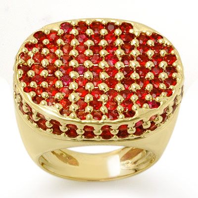 Genuine 7.0 ctw Red Sapphire Ring 14K Yellow Gold - Retails for $6640 ---- Gemstone: Natural Sapphire----Gemstone color: Red----Gemstone quality: Good-to-Very Good----Gemstone Cut & Weight: 145 Round cut @ 7.0 ctw----Metal Purity & Color : 14K Gold-Yellow----Gold weight: 19.5 grams----Ring size (US): 7.5----Dimension: Approx. 13/16 x 1--------Shipping: Within 15 business days