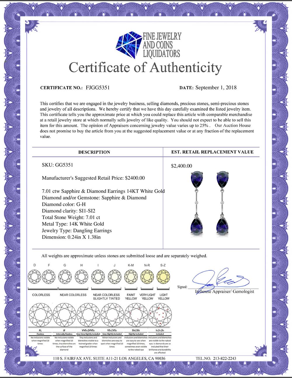 REF-78K9V - SKU: GG5351 ---- Genuine 7.01 ctw Sapphire & Diamond Earrings 14KT White Gold