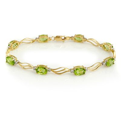 Genuine 7.02 ctw Peridot & Diamond Bracelet Yellow Gold - Retails for $1300 ---- Diamond: 2 Round cut @ 0.02 ctw---- Clarity: SI-I---- Color: H-K----Gemstone: Natural Peridot----Gemstone color: Green----Gemstone quality: Good-to-Very Good----Gemstone Cut & Weight: 8 Oval cut @ 7.0 ctw----Metal Purity & Color : 10K Gold-Yellow----Gold weight: 5.90 grams----Dimension: Approx. 7 x 3/16----Shipping: Within 15 business days