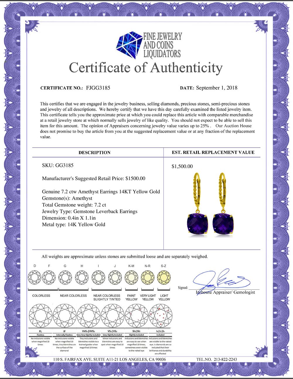 REF-48Z3N - SKU: GG3185 ---- Genuine 7.2 ctw Amethyst Earrings 14KT Yellow Gold