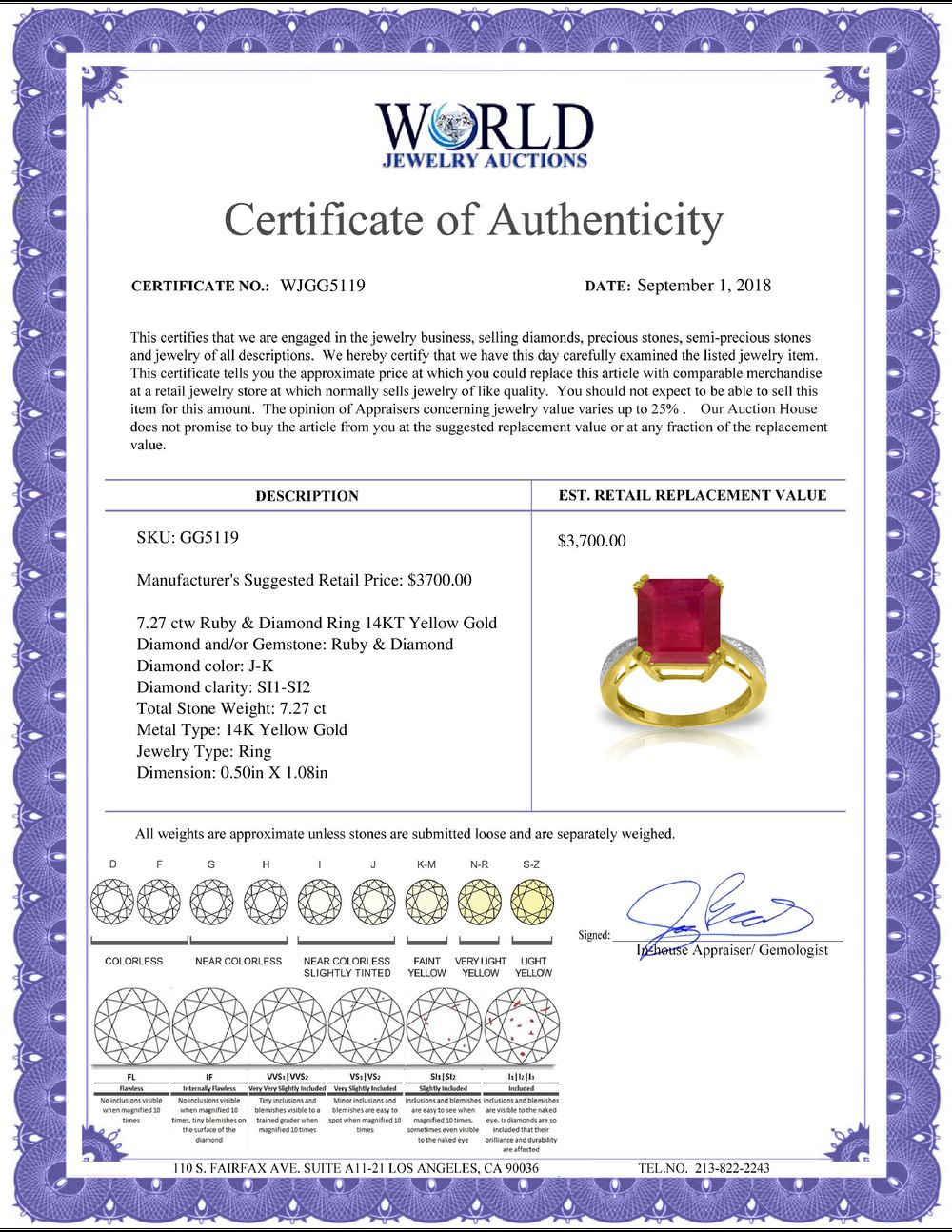 REF-120X2M - SKU: GG5119 ---- Genuine 7.27 ctw Ruby & Diamond Ring 14KT Yellow Gold