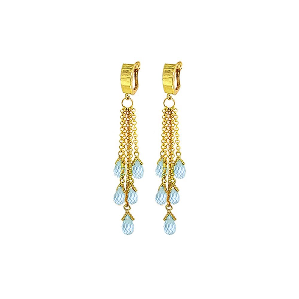 Genuine 14K Yellow Gold 7.3 ctw Blue Topaz Earrings
