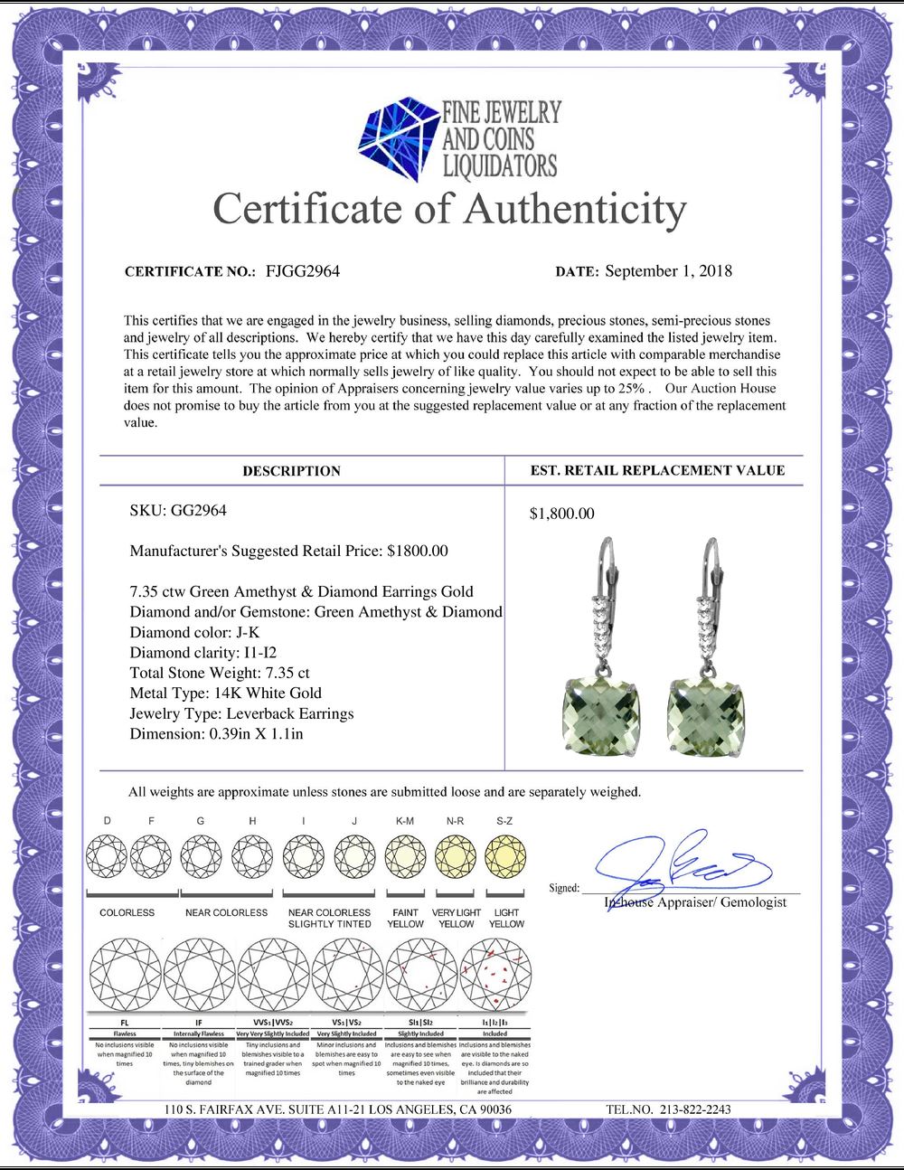 Genuine 14K White Gold 7.35 ctw Green Amethyst & Diamond Earrings