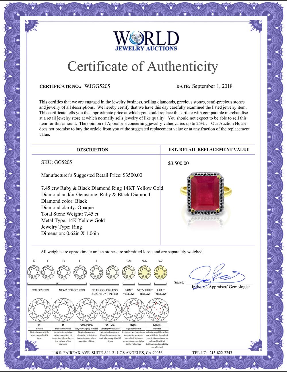 Genuine 14K Yellow Gold 7.45 ctw Ruby & Black Diamond Ring