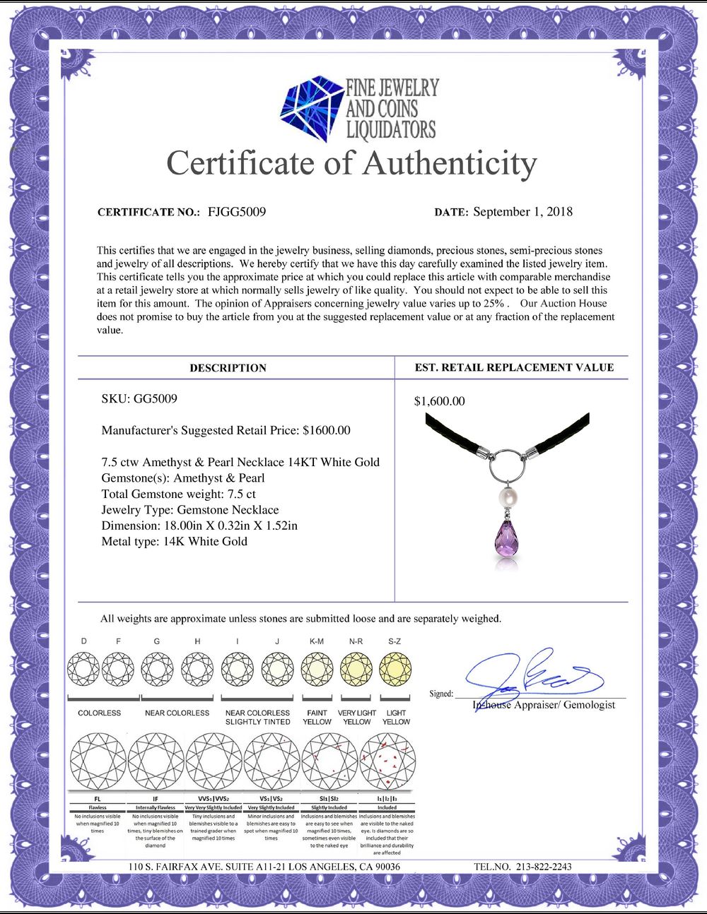 REF-52K9V - SKU: GG5009 ---- Genuine 7.5 ctw Amethyst & Pearl Necklace 14KT White Gold