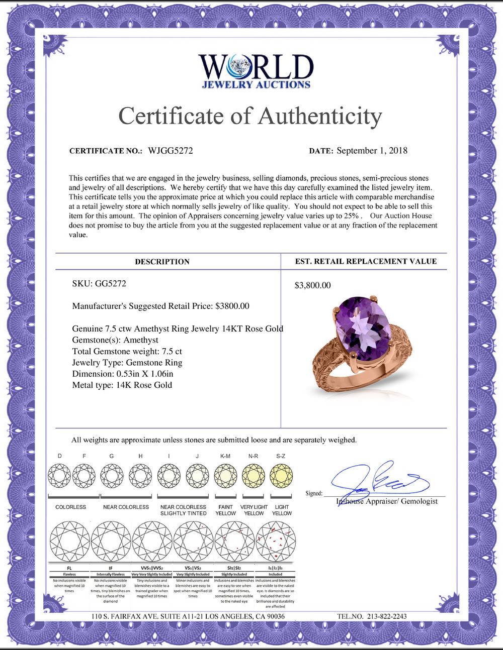 REF-125K9V - SKU: GG5272 ---- Genuine 7.5 ctw Amethyst Ring 14KT White Gold