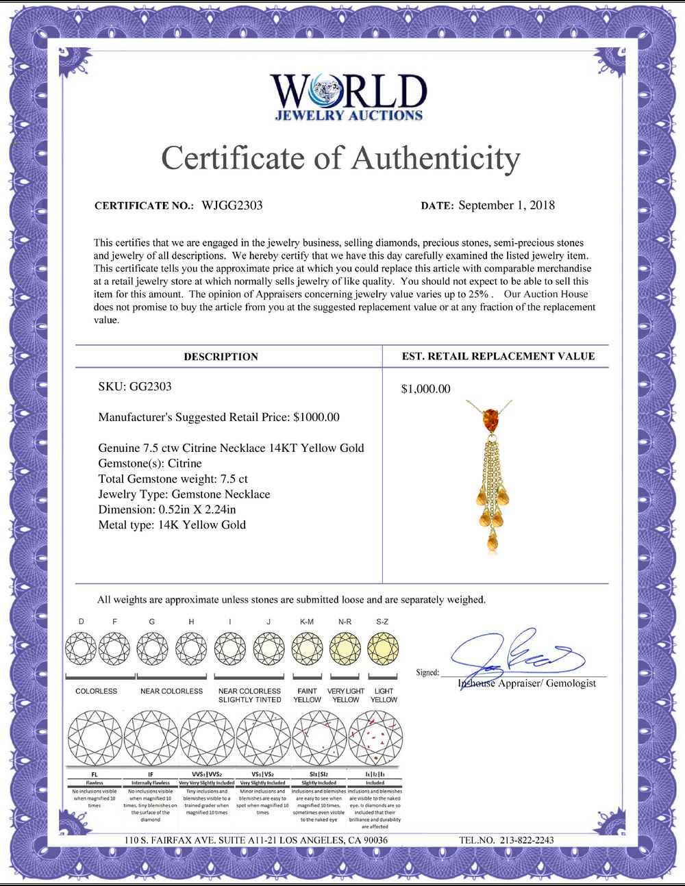 REF-32T8A - SKU: GG2303 ---- Genuine 7.5 ctw Citrine Necklace 14KT Yellow Gold