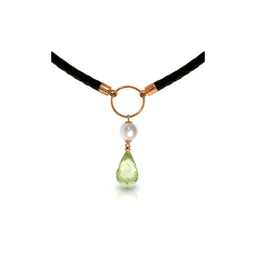 Genuine 14K Rose Gold 7.5 ctw Green Amethyst & Pearl Necklace