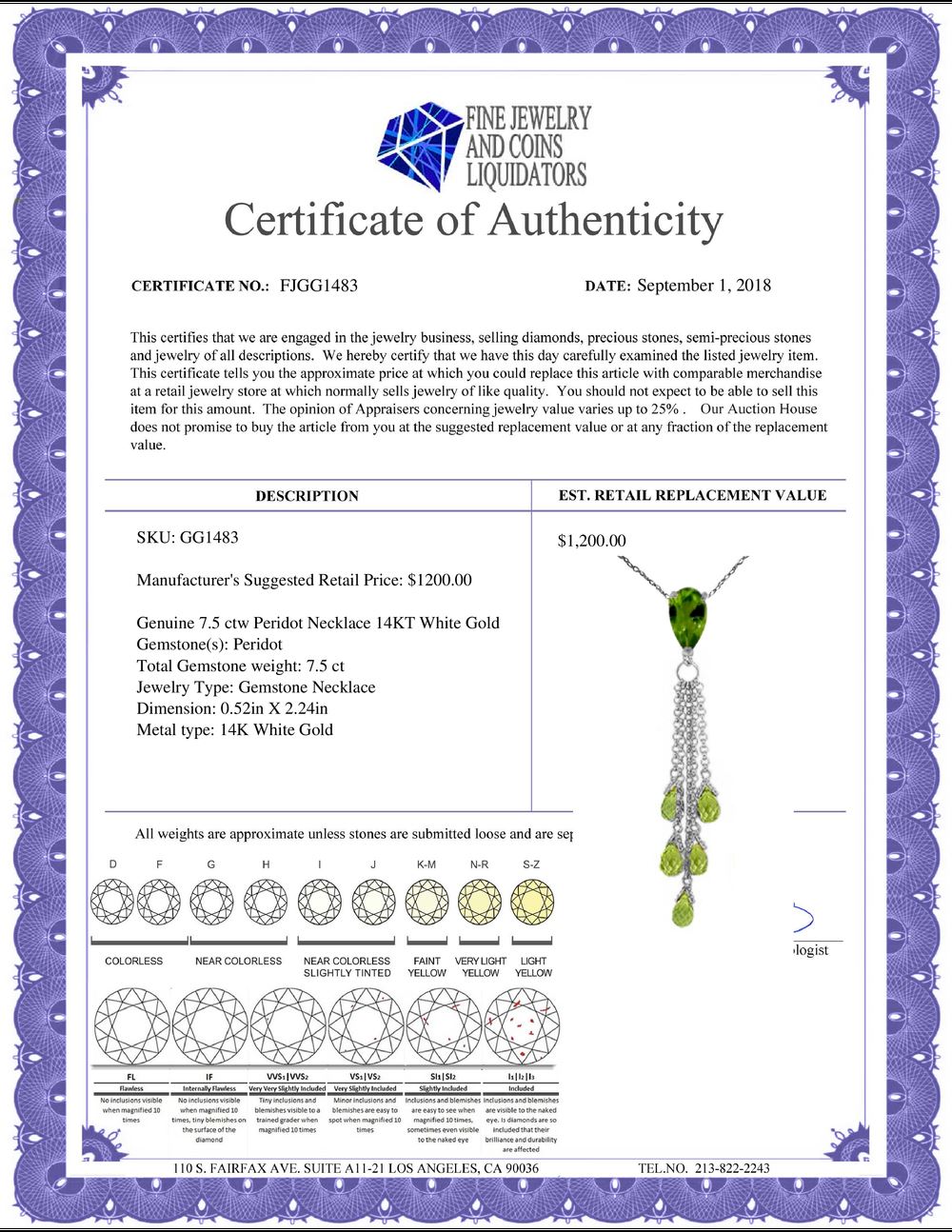 Genuine 14K Rose Gold 7.5 ctw Peridot Necklace