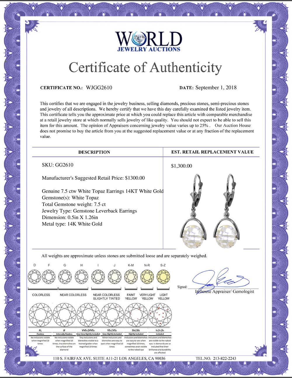 REF-43Z2N - SKU: GG2610 ---- Genuine 7.5 ctw White Topaz Earrings 14KT Rose Gold