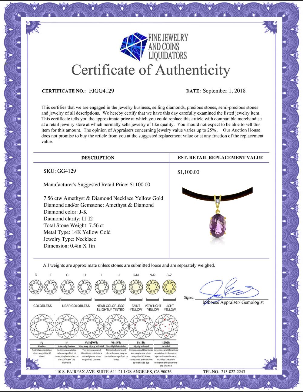 REF-35K5V - SKU: GG4129 ---- Genuine 7.56 ctw Amethyst & Diamond Necklace 14KT Yellow Gold