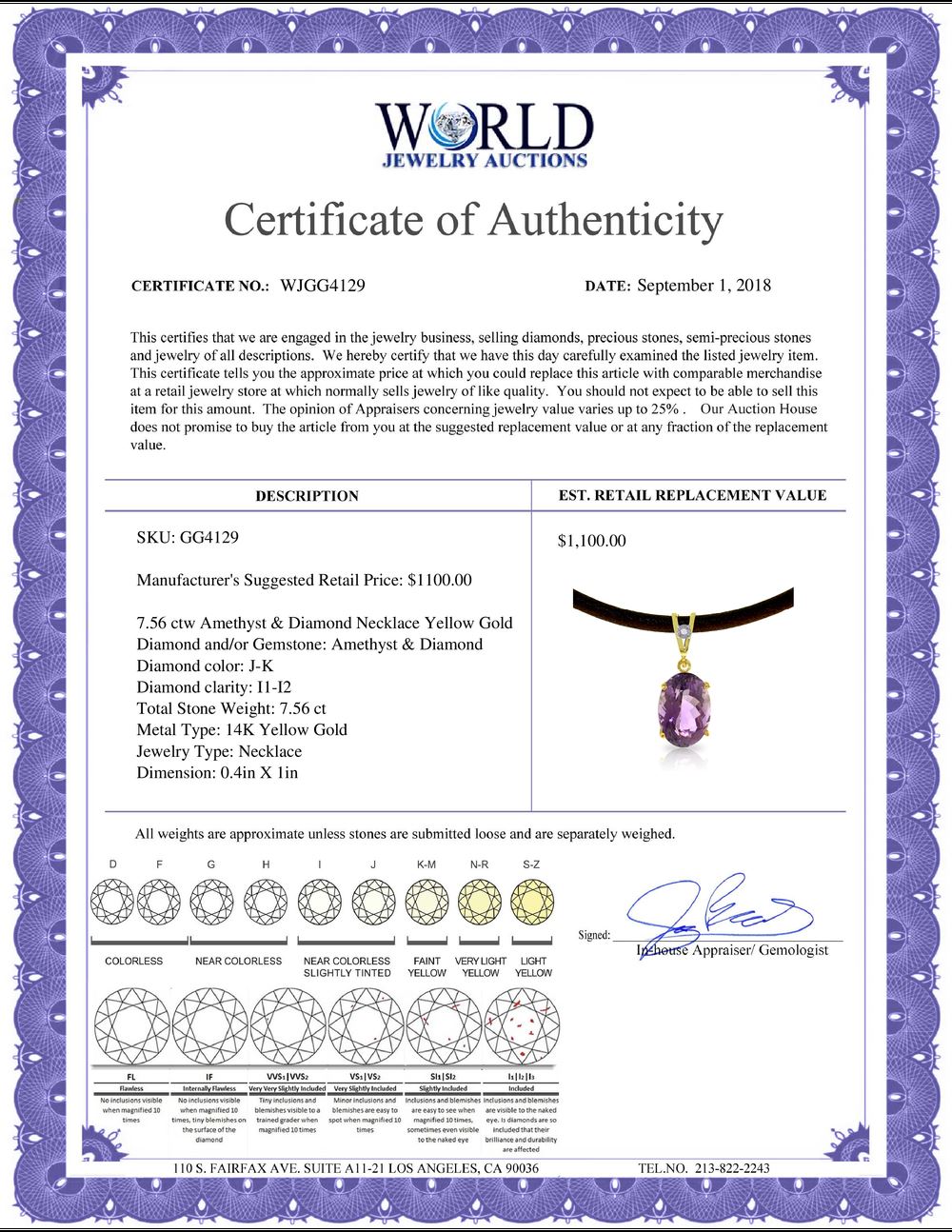 REF-35K5V - SKU: GG4129 ---- Genuine 7.56 ctw Amethyst & Diamond Necklace 14KT Yellow Gold