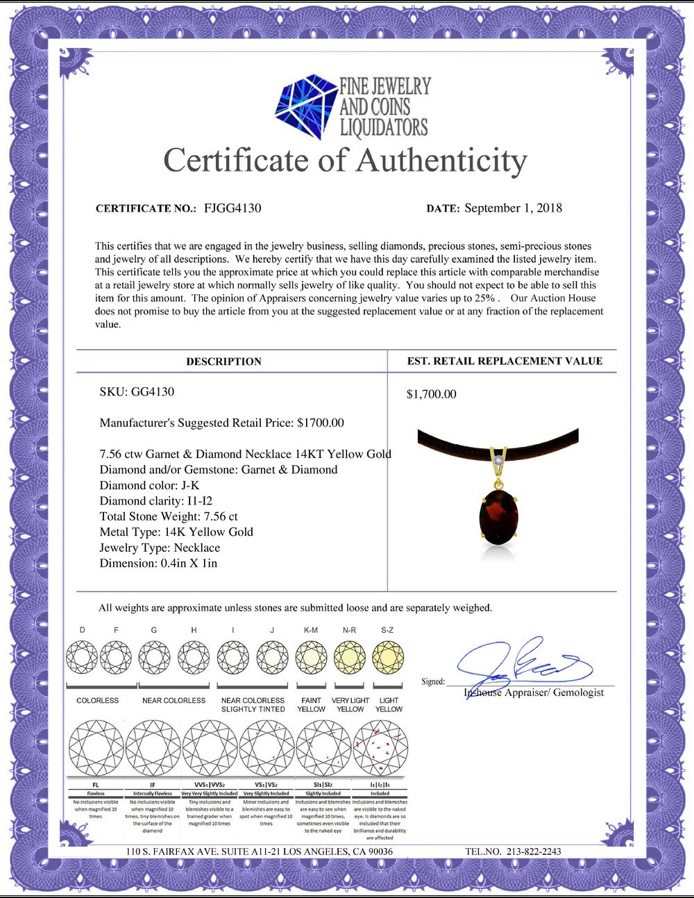 REF-53F8Z - SKU: GG4130 ---- Genuine 7.56 ctw Garnet & Diamond Necklace 14KT Yellow Gold