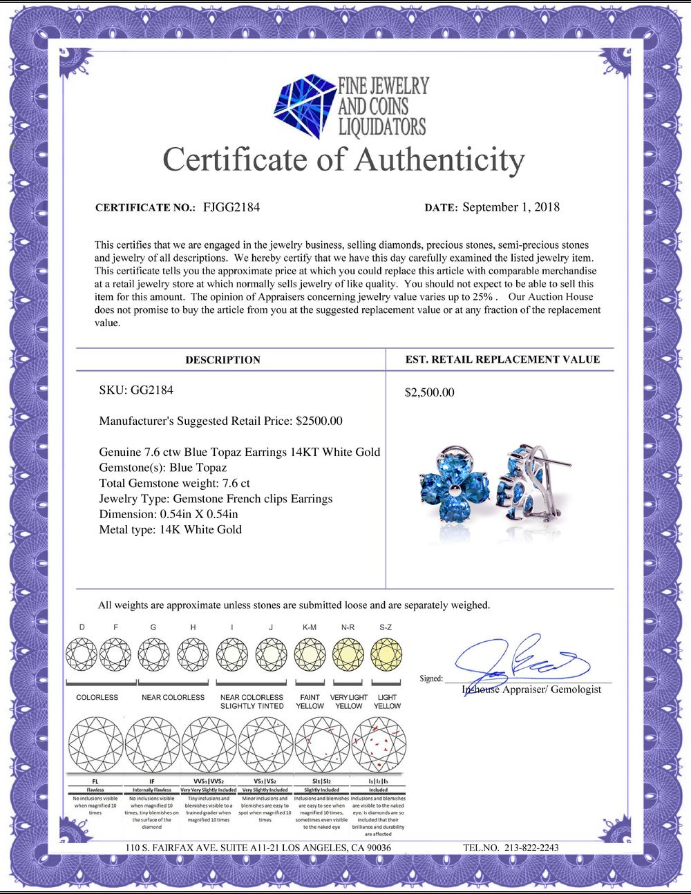 All Gia and EGL Diamonds are subject to availability due to consignors’ terms with us.
