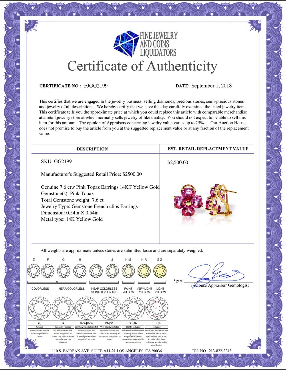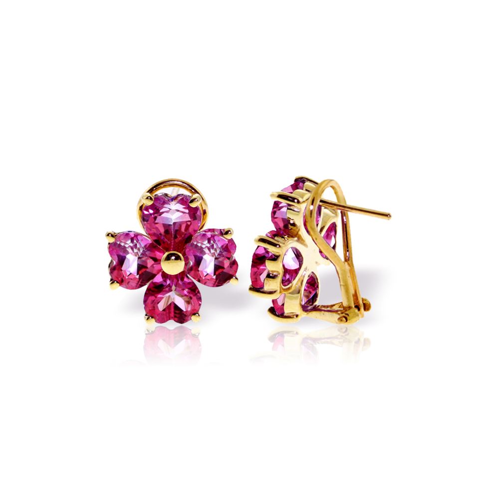 REF-82W9Y - SKU: GG2199 ---- Genuine 7.6 ctw Pink Topaz Earrings 14KT Yellow Gold