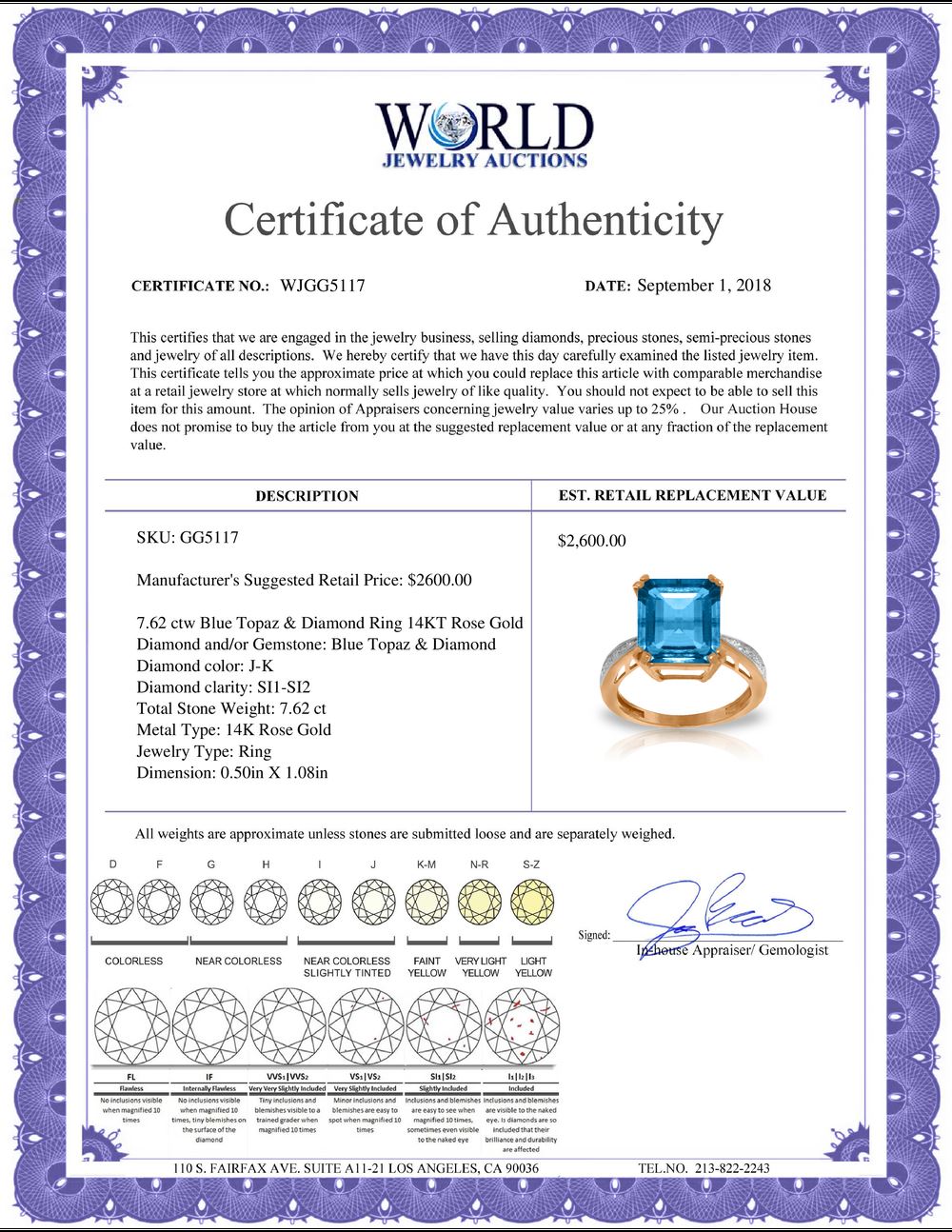 Genuine 14K Rose Gold 7.62 ctw Blue Topaz & Diamond Ring