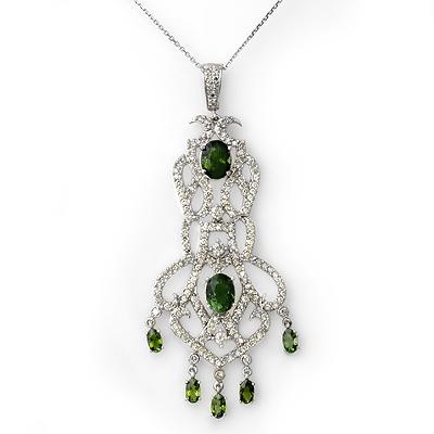 Diamond: 185 Round cut @ 2.65 ctw---- Clarity: SI-I---- Color: H-K----Gemstone: Natural Tourmaline----Gemstone color: Green----Gemstone quality: Good-to-Very Good----Gemstone Cut & Weight: 7 Oval cut @ 5.0 ctw----Metal Purity & Color : 14K Gold-White----Gold weight: 15.2 grams----Dimension: Approx. 1 1/8 x 2 1/2Consignor: World Jewelry Outlet----Delivery: Within 10 business days