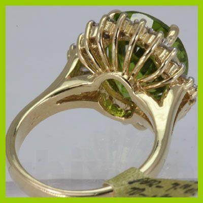 Main Stone: Peridot ; Carat Weight: 7.76ctw ; Gold Carat:14KT; Metal: Yellow Gold ; Diamond Count: TD.20/RD.46 ; Diamond Weight: 0.66 ; Gemstone Carat Weight: 7.1