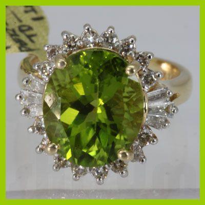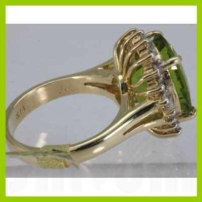 Main Stone: Peridot ; Carat Weight: 7.76ctw ; Gold Carat:14KT; Metal: Yellow Gold ; Diamond Count: TD.20/RD.46 ; Diamond Weight: 0.66 ; Gemstone Carat Weight: 7.1