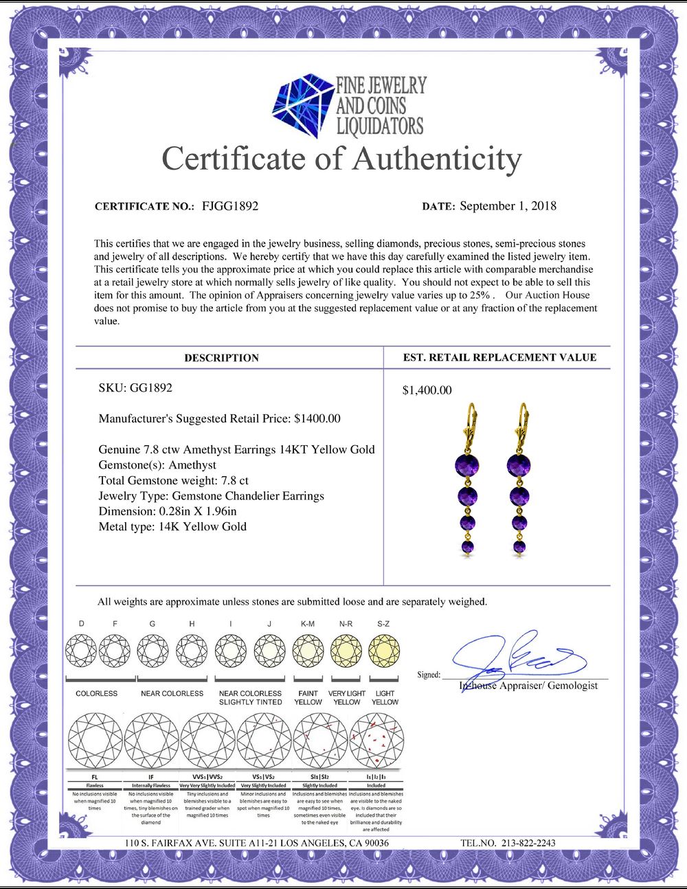 REF-46A3K - SKU: GG1892 ---- Genuine 7.8 ctw Amethyst Earrings 14KT Yellow Gold
