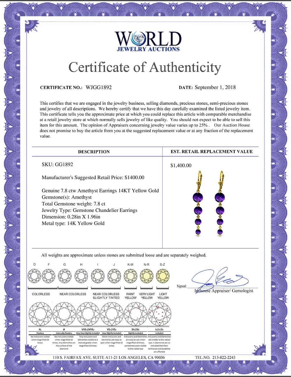 REF-46A3K - SKU: GG1892 ---- Genuine 7.8 ctw Amethyst Earrings 14KT Yellow Gold