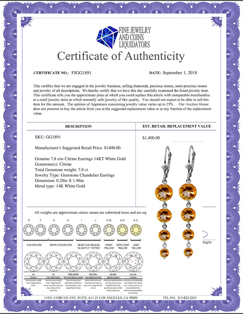 REF-46X3M - SKU: GG1891 ---- Genuine 7.8 ctw Citrine Earrings 14KT Rose Gold
