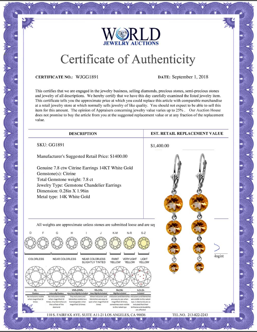 REF-46X3M - SKU: GG1891 ---- Genuine 7.8 ctw Citrine Earrings 14KT Rose Gold