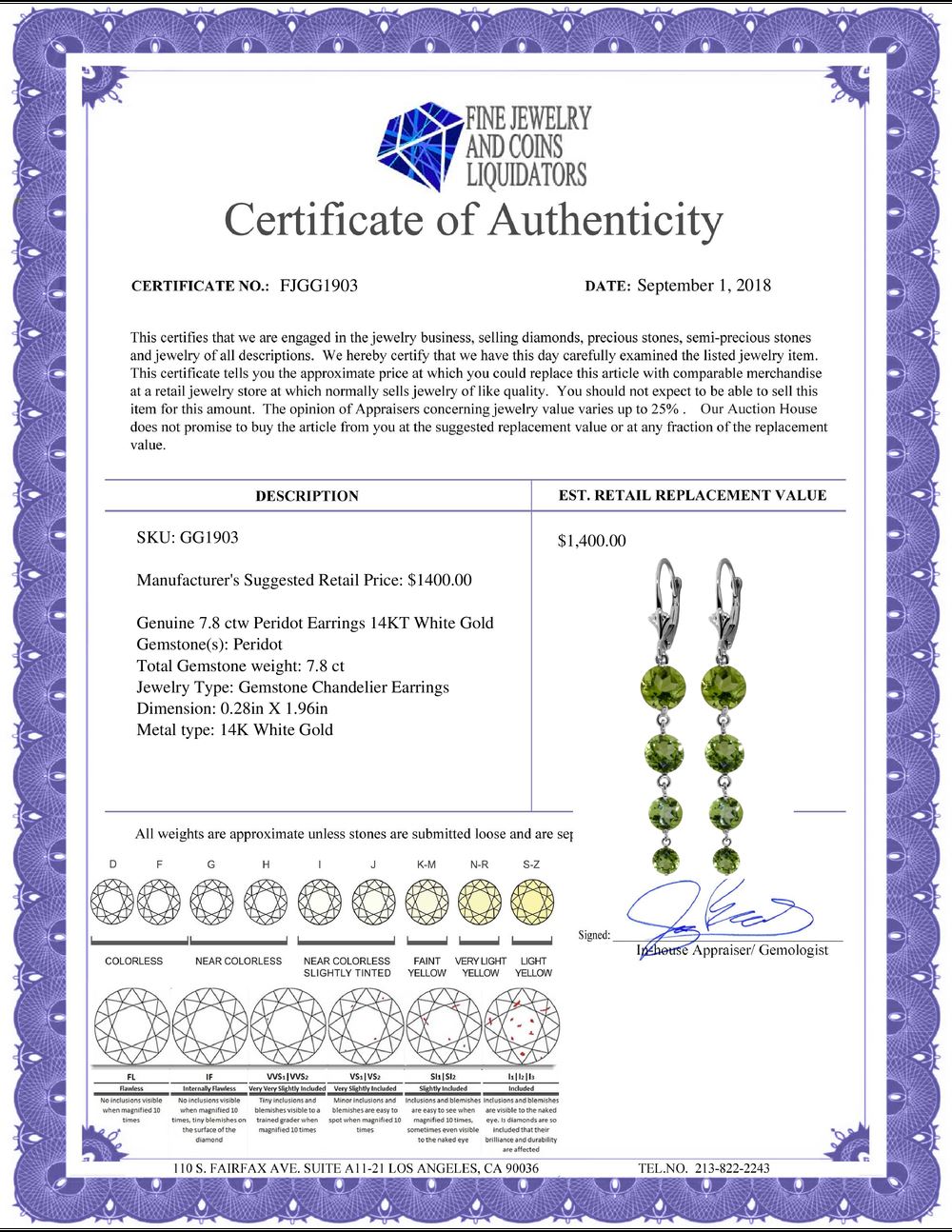 Genuine 14K White Gold 7.8 ctw Peridot Earrings
