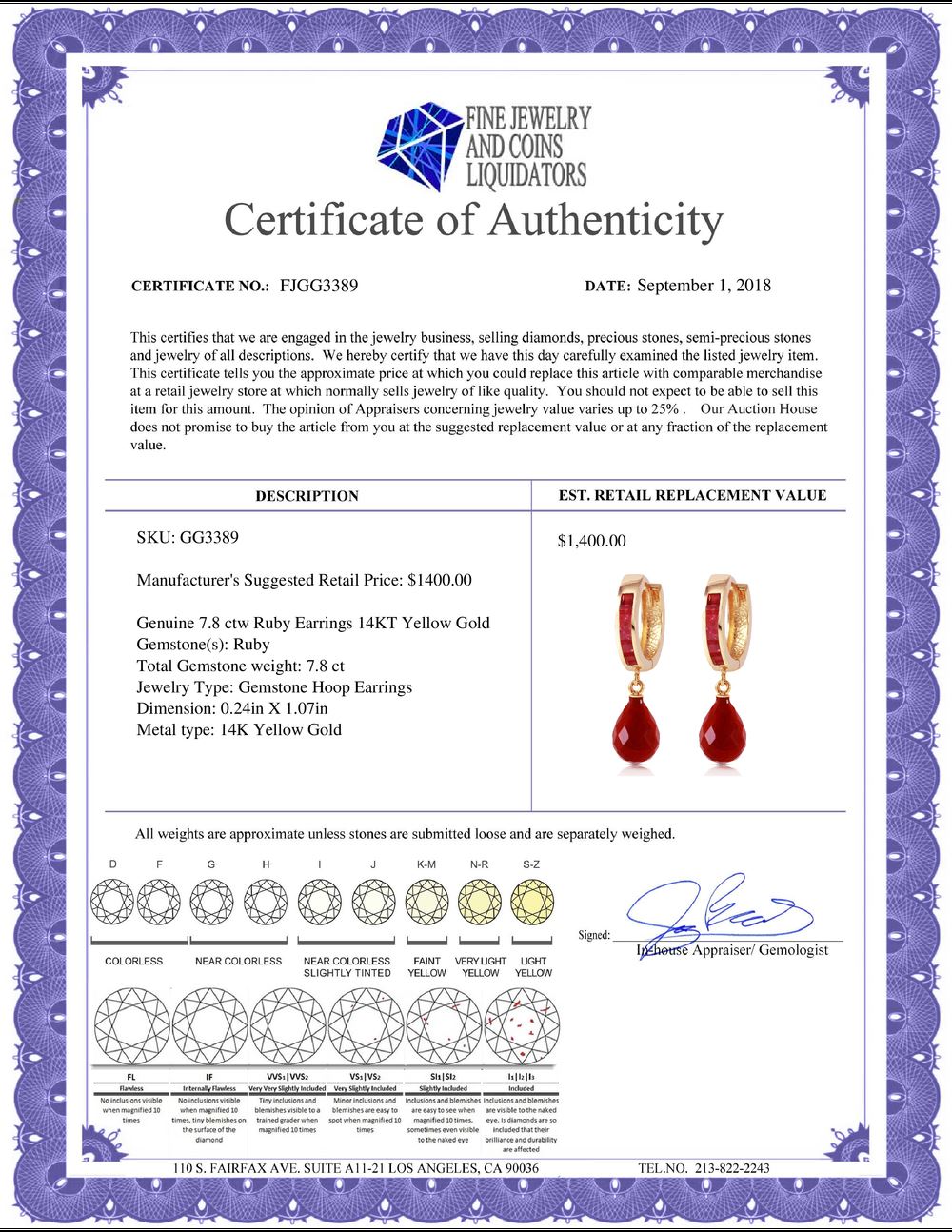 REF-45A8K - SKU: GG3389 ---- Genuine 7.8 ctw Ruby Earrings 14KT Yellow Gold