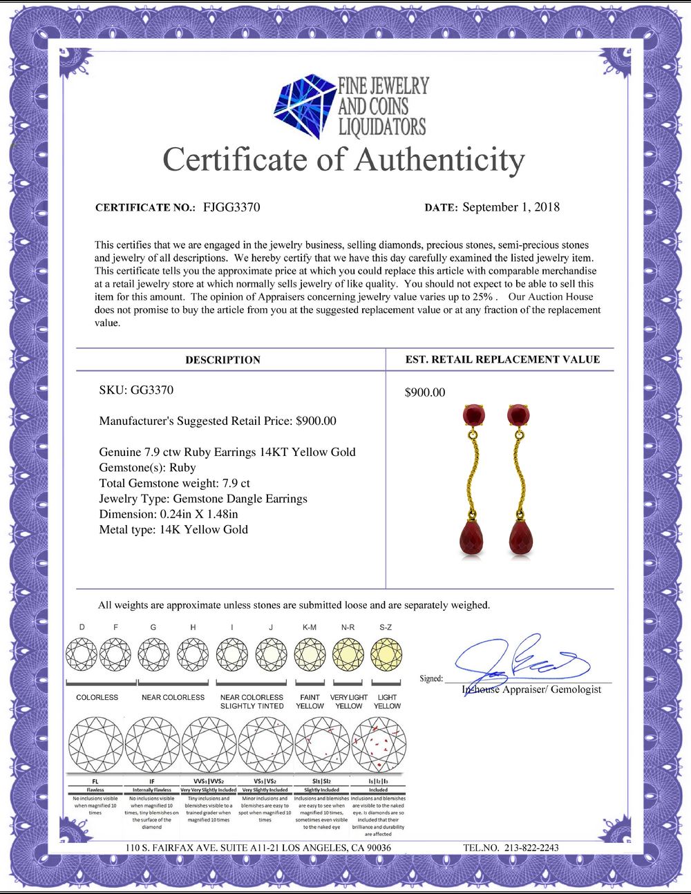 Genuine 14K Yellow Gold 7.9 ctw Ruby Earrings