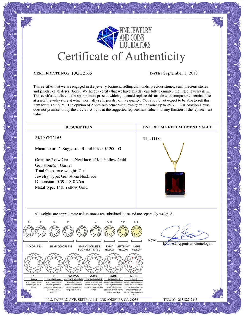 REF-38F2Z - SKU: GG2165 ---- Genuine 7 ctw Garnet Necklace 14KT Yellow Gold