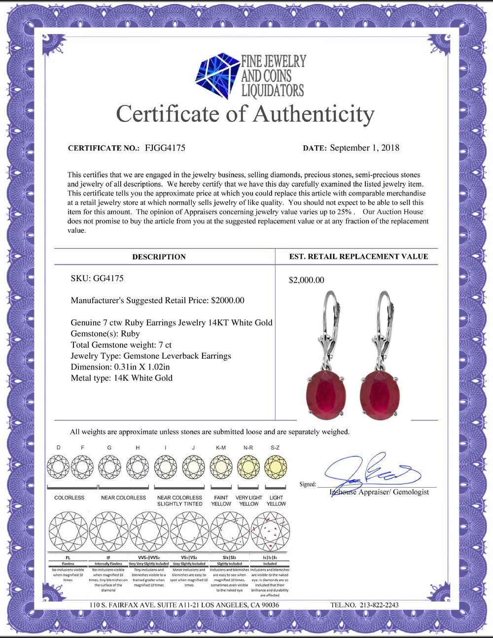 REF-64M6T - SKU: GG4175 ---- Genuine 7 ctw Ruby Earrings 14KT White Gold